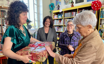RURAL et CITOYEN élargit son camp d'action Le samedi 27 septembre, Christiane LABORDE, vice-présidente honoraire de la section Béarn-Soule a remis un ordinateur portable à la présidente de l'association "A vous de lire" Maïda GOURAYA.